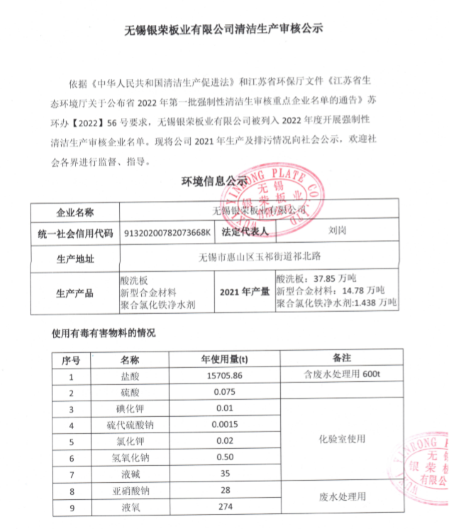 無錫銀榮板業有限公司清潔生產審核公示